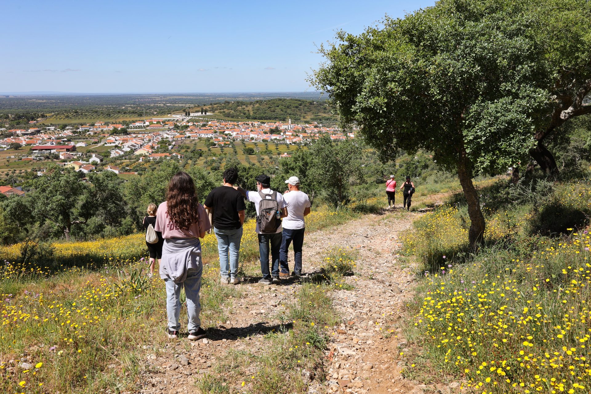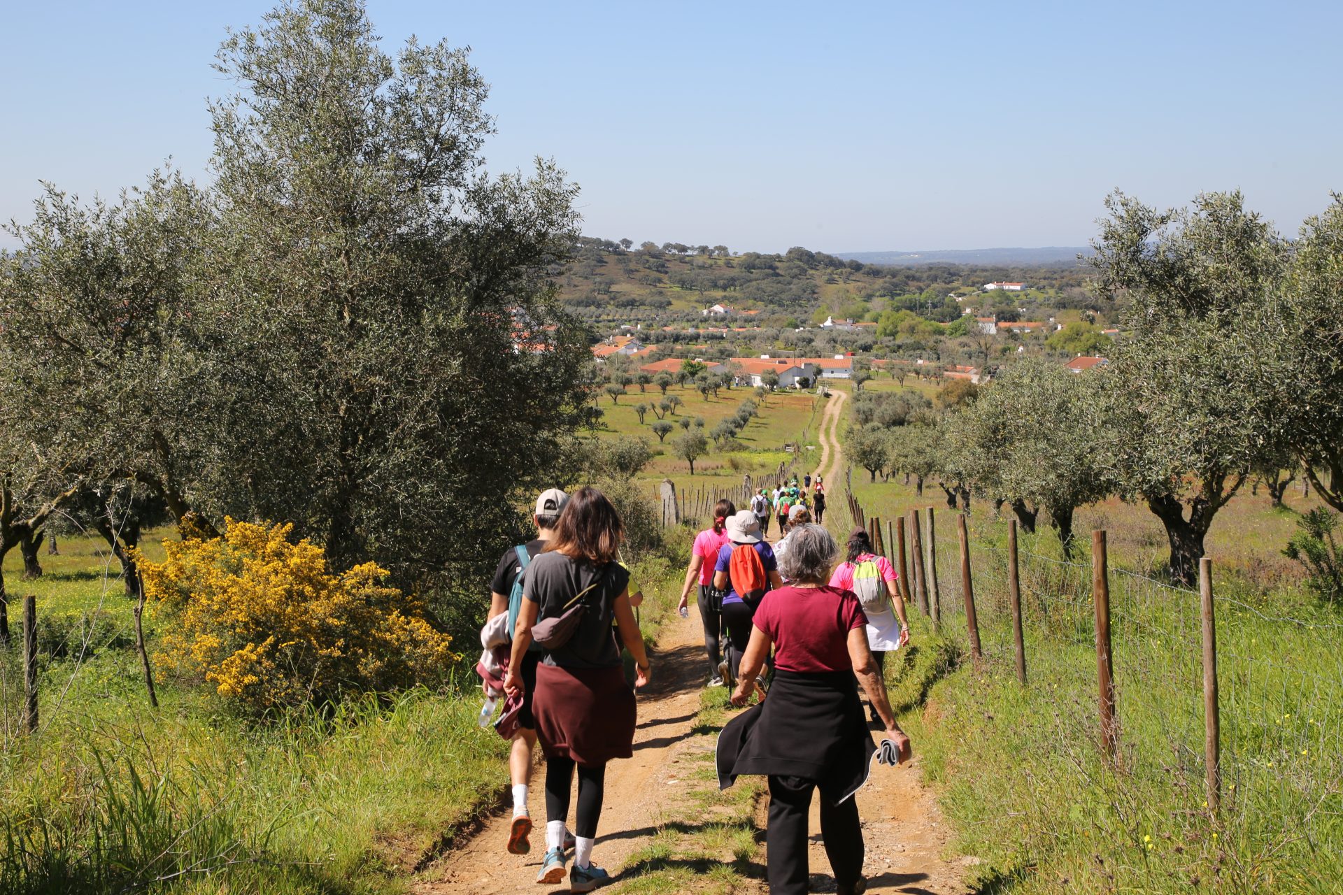 Ferrenha. Adiante passe em frente no Monte da Majufa. Ao ver a antiga pedreira de calcário, siga pelo montado até passar junto ao Monte da Ameira, O caminho atinge zona baixa, normalmente alagada. Comece a subida ladeando a produção de carvão até atingir o caminho no topo da colina que segue, à direita, junto à pedreira que se avista do lado esquerdo. Antes de chegar à estrada M370 vire à direita, passe ao antigo monte e, após curta subida, inicie a descida que leva ao espaço urbano e ao centro da vila.