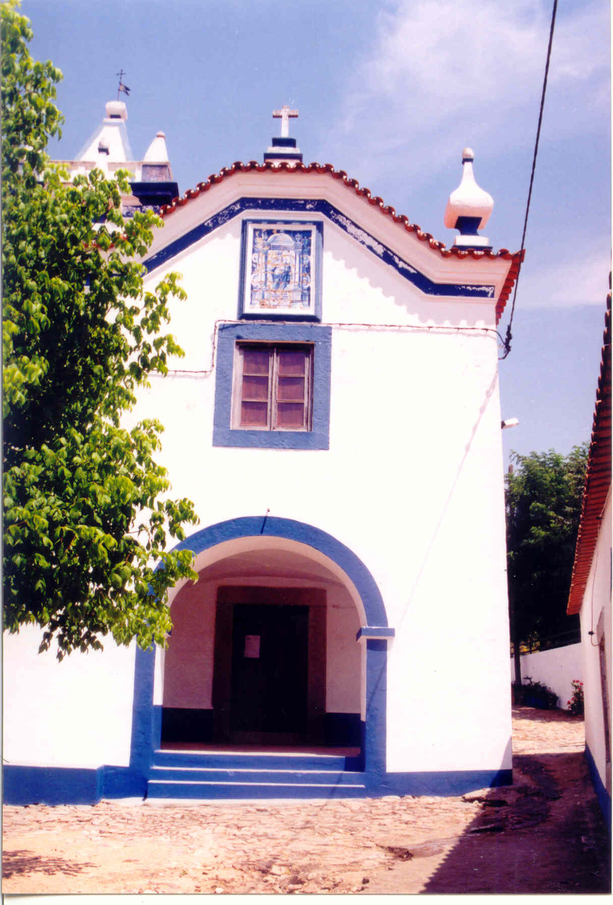 Na fachada é observado um painel de azulejos, datado de 1729, com a imagem de Nª Sra. do Rosário. No seu interior, possui inúmeros vestígios de arte manuelina.